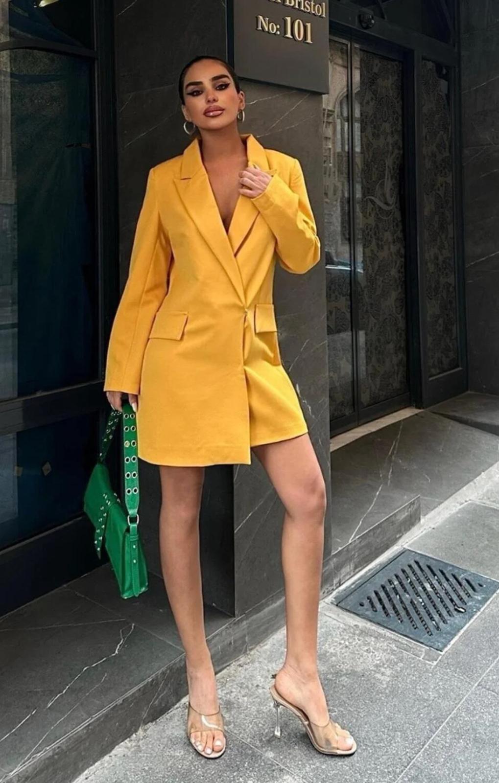 Kruvaze Yaka Astarlı Ceket Elbise Sarı Kruvaze Yaka Astarlı Ceket Elbise Yeşil Kruvaze Yaka Astarlı Ceket Elbise Turuncu